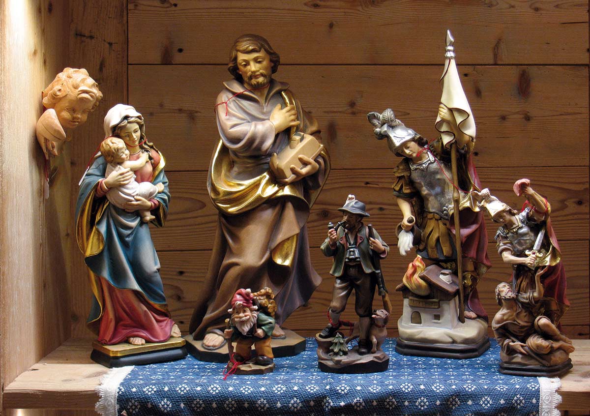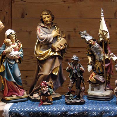 Nel nostro laboratorio scolpiamo il legno con la stessa passione e la stessa maestria trasmesse dai nostri avi, portando avanti ancora oggi la centenaria tradizione dell'intaglio artigianale. Nascono così i caratteristici animali, le figure religiose, le immagini di vita di montagna... e non solo. Ci lasciamo ispirare dalla materia stessa, dai colori e dai profumi dei nostri alberi e delle nostre valli per creare quadri, pannelli decorativi, insegne, in cui il legno non è più solo materia da plasmare, ma vero e proprio protagonista. Qualunque stile abbia la tua casa (tradizionale, moderna, di design) abbiamo l'opera in legno che può completarne l'arredamento.