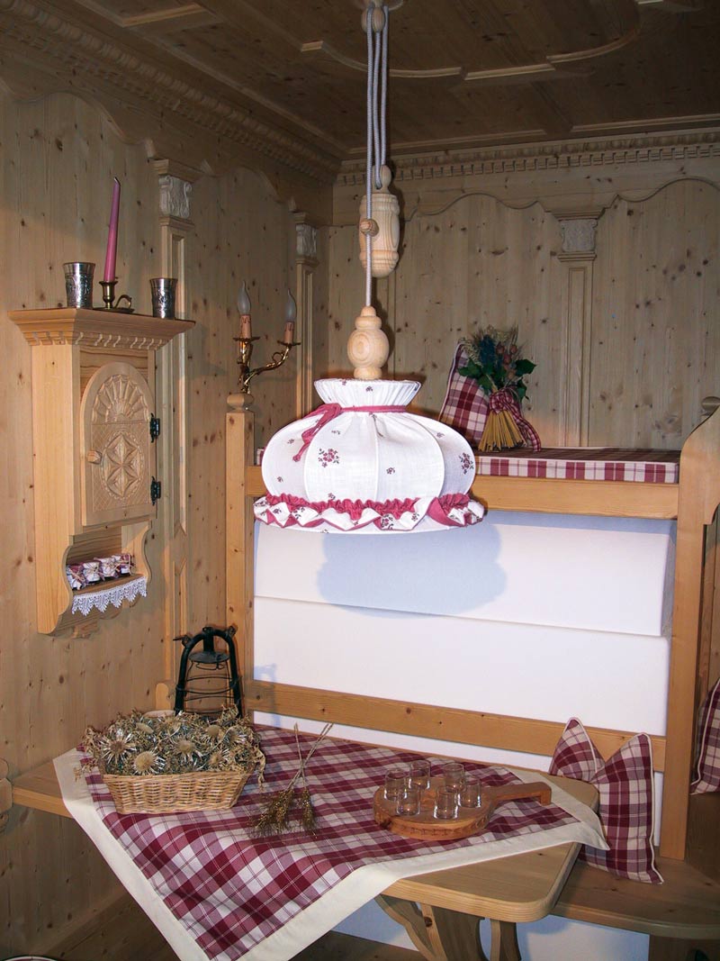Progettiamo e realizziamo arredamenti per stube dal fascino antico. Lasciamo che il legno "vecchio" ci racconti la sua storia, e lo lavoriamo per creare la tipica atmosfera calda e accogliente delle case di montagna, raccolte attorno alle tradizionali stufe in maiolica. Curiamo ogni dettaglio della tua stube, dai rivestimenti ai mobili, dalle decorazioni ai complementi d'arredo, coniugando la sapiente manualità artigianale e la tecnologia più innovativa per garantire i migliori risultati. Completiamo il tuo arredamento con incisioni, decorazioni e targhe realizzate a mano.
